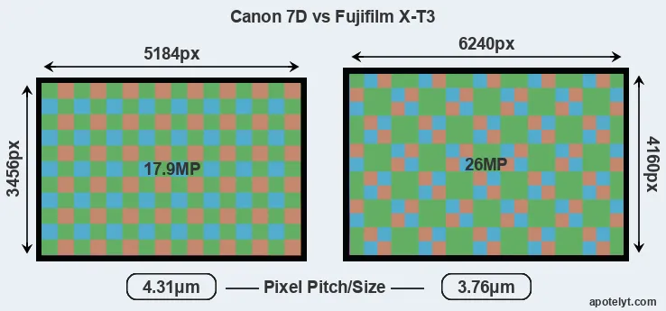 | Sensor Specs | Canon 7D | Fujifilm X-T3 |