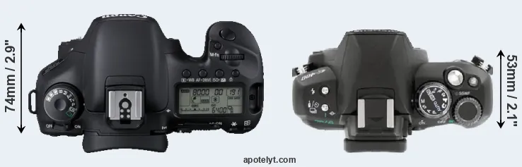 | 9. | Canon 70D | 139 mm | 104 mm | 79 mm | 755 g | 920 | Y | Jul 2013 | US$ 1 199 | ebay.com | |