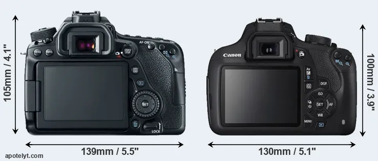 | 13. | Canon T6i | 132 mm | 101 mm | 78 mm | 555 g | 440 | n | Feb 2015 | US$ 749 | ebay.com | |