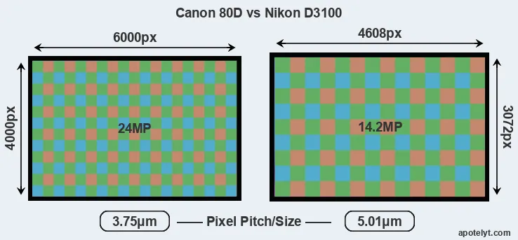 | Sensor Specs | Canon 80D | Nikon D3100 |