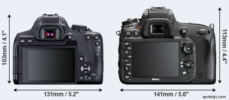 | 8. | Canon 800D | 131 mm | 100 mm | 76 mm | 532 g | 600 | n | Feb 2017 | EUR 849 | ebay.com | |