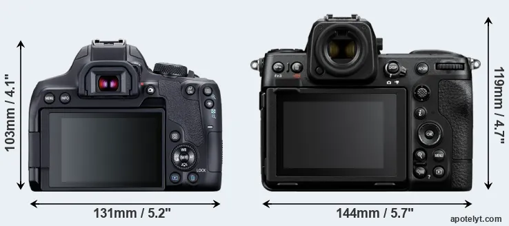 Going beyond this snapshot of core features and characteristics, what are the differences between the Canon EOS 850D and the Nikon Z8? Which one should you buy? Read on to find out how these two cameras compare with respect to their body size, their imaging sensors, their shooting features, their input-output connections, and their reception by expert reviewers.