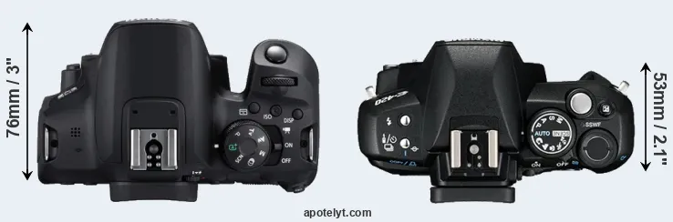 | 5. | Canon 250D | 122 mm | 93 mm | 70 mm | 449 g | 1070 | n | Apr 2019 | EUR 549 | amazon.com | |