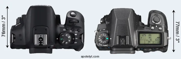 | 3. | Canon 77D | 131 mm | 100 mm | 76 mm | 540 g | 600 | n | Feb 2017 | US$ 899 | ebay.com | |