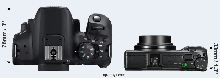 The above size and weight comparisons are to some extent incomplete and possibly misleading, as the GR III has a lens built in, whereas the 850D is an interchangeable lens camera that requires a separate lens. Attaching the latter will add extra weight and bulk to the setup. You can compare the optics available for the 850D and their specifications in the Canon EF Lens Catalog.