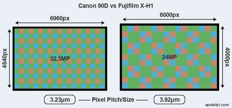 | Sensor Specs | Canon 90D | Fujifilm X-H1 |