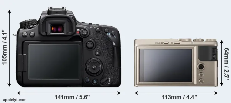 | 1. | Canon 90D | 141 mm | 105 mm | 77 mm | 701 g | 1300 | Y | Aug 2019 | US$ 1 199 | amazon.com | |