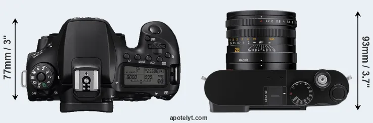 Going beyond this snapshot of core features and characteristics, what are the differences between the Canon EOS 90D and the Leica Q3? Which one should you buy? Read on to find out how these two cameras compare with respect to their body size, their imaging sensors, their shooting features, their input-output connections, and their reception by expert reviewers.