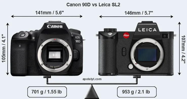 | Body Specs | Canon 90D | Leica SL2 |