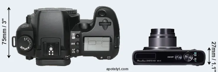 The above size and weight comparisons are to some extent incomplete and possibly misleading, as the SX610 has a lens built in, whereas the D30 is an interchangeable lens camera that requires a separate lens. Attaching the latter will add extra weight and bulk to the setup. You can compare the optics available for the D30 and their specifications in the Canon EF Lens Catalog.