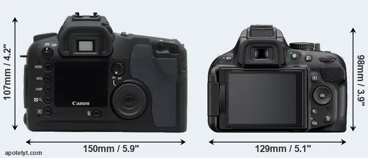 The above size and weight comparisons are to some extent incomplete since they do not consider the interchangeable lenses that both of these cameras require. Yet, since both cameras are based around an APS-C sensor, their respective lenses will tend to have similar dimensions and heft. You can compare the optics available for the two cameras in the Canon EF Lens Catalog (D30) and the Nikon Lens Catalog (D5200).