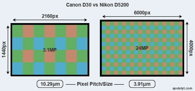 | Sensor Specs | Canon D30 | Nikon D5200 |