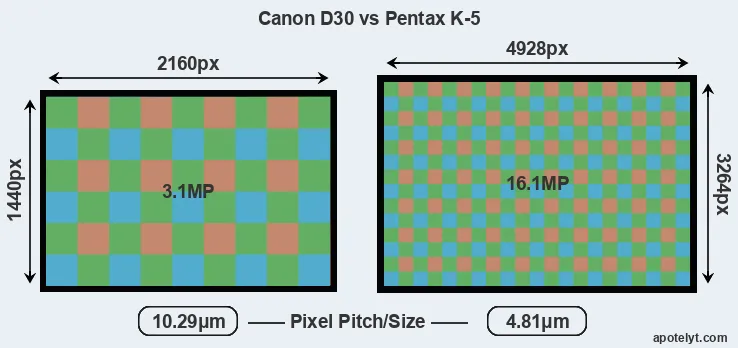 | Sensor Specs | Canon D30 | Pentax K-5 |
