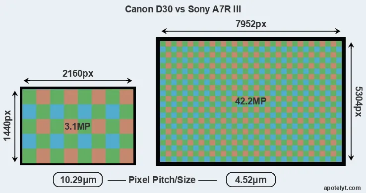 | Sensor Specs | Canon D30 | Sony A7R III |