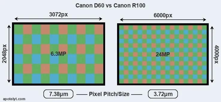 | Sensor Specs | Canon D60 | Canon R100 |