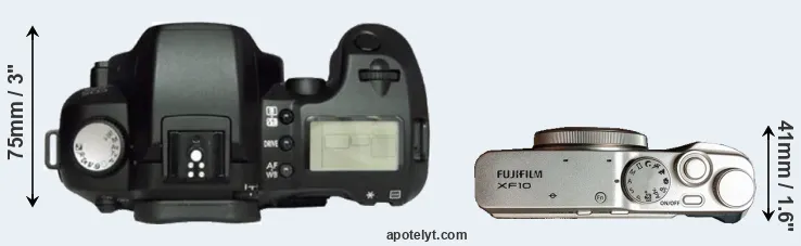 The above size and weight comparisons are to some extent incomplete and possibly misleading, as the XF10 has a lens built in, whereas the D60 is an interchangeable lens camera that requires a separate lens. Attaching the latter will add extra weight and bulk to the setup. You can compare the optics available for the D60 and their specifications in the Canon EF Lens Catalog.