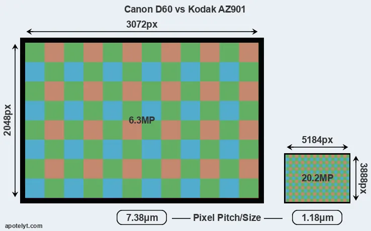 | Sensor Specs | Canon D60 | Kodak AZ901 |