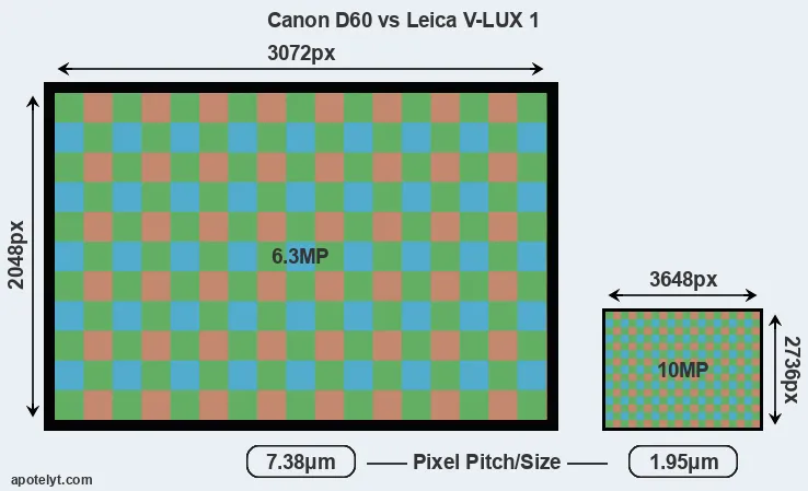 | Sensor Specs | Canon D60 | Leica V-LUX 1 |