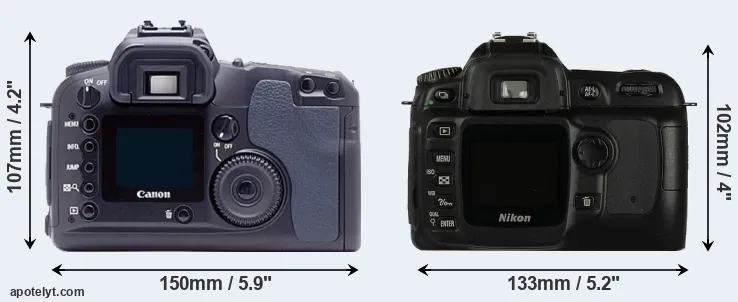 | 17. | Nikon D100 | 144 mm | 116 mm | 81 mm | 780 g | 370 | n | Feb 2002 | US$ 1 999 | ebay.com | |