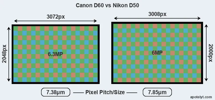 | Sensor Specs | Canon D60 | Nikon D50 |