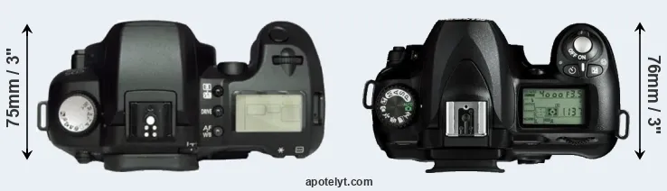 | 15. | Nikon D70s | 140 mm | 111 mm | 78 mm | 679 g | 500 | n | Apr 2005 | US$ 899 | ebay.com | |