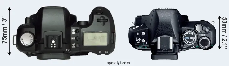 | 2. | Olympus E-410 | 130 mm | 91 mm | 53 mm | 435 g | 500 | n | Mar 2007 | EUR 699 | ebay.com | |