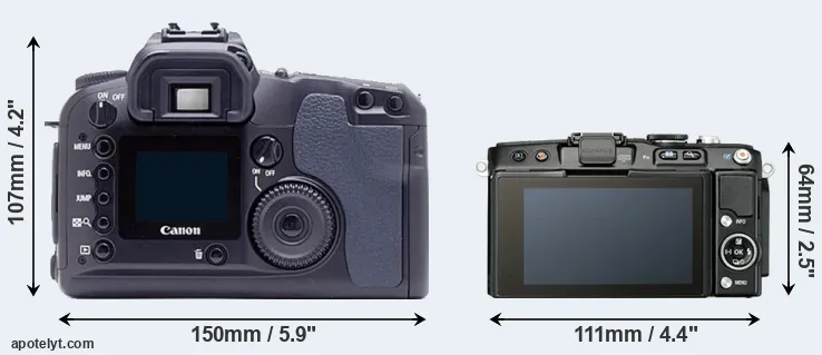 Going beyond this snapshot of core features and characteristics, what are the differences between the Canon EOS-D60 and the Olympus PEN E-PL5? Which one should you buy? Read on to find out how these two cameras compare with respect to their body size, their imaging sensors, their shooting features, their input-output connections, and their reception by expert reviewers.