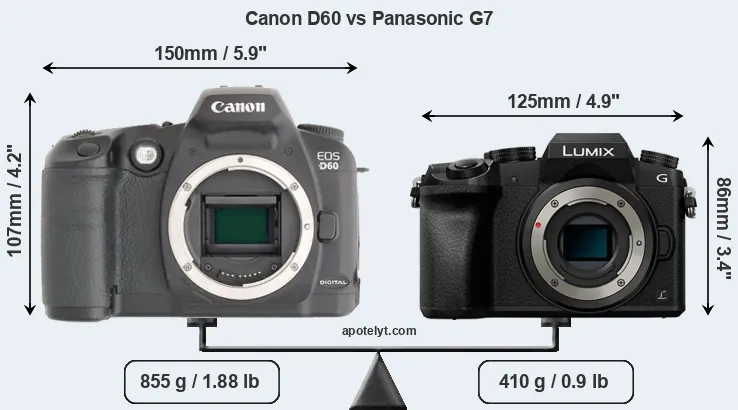 Size Canon D60 vs Panasonic G7