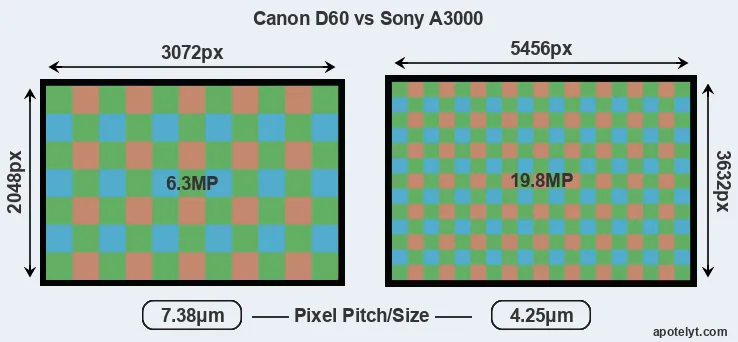 | Sensor Specs | Canon D60 | Sony A3000 |