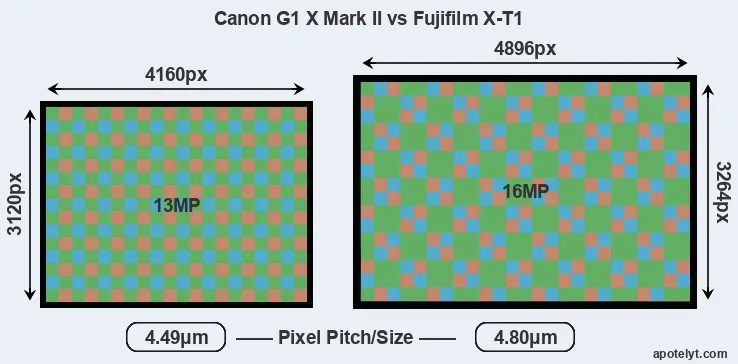 | Sensor Specs | Canon G1 X Mark II | Fujifilm X-T1 |