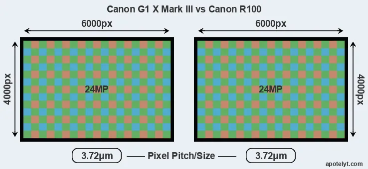 | Sensor Specs | Canon G1 X Mark III | Canon R100 |