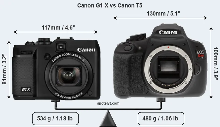 | Body Specs | Canon G1 X | Canon T5 |