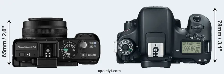 Technology-wise, the T6s uses a more advanced image processing engine (DIGIC 6) than the G1X (DIGIC 5), with benefits for noise reduction, color accuracy, and processing speed.