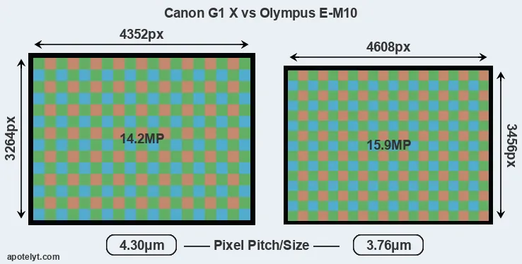 | Sensor Specs | Canon G1 X | Olympus E-M10 |