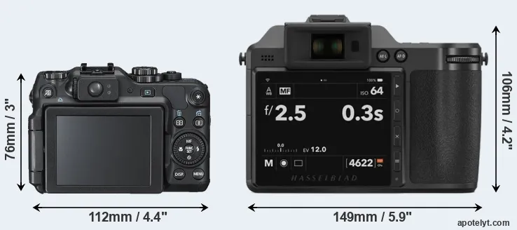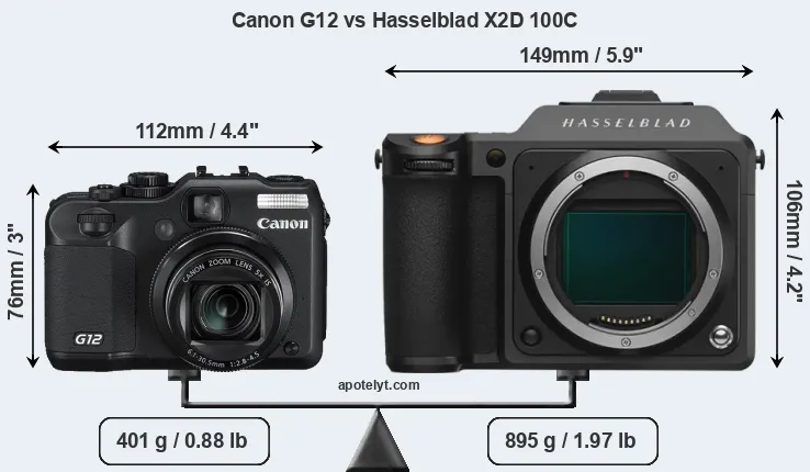 | Body Specs | Canon G12 | Hasselblad X2D 100C |