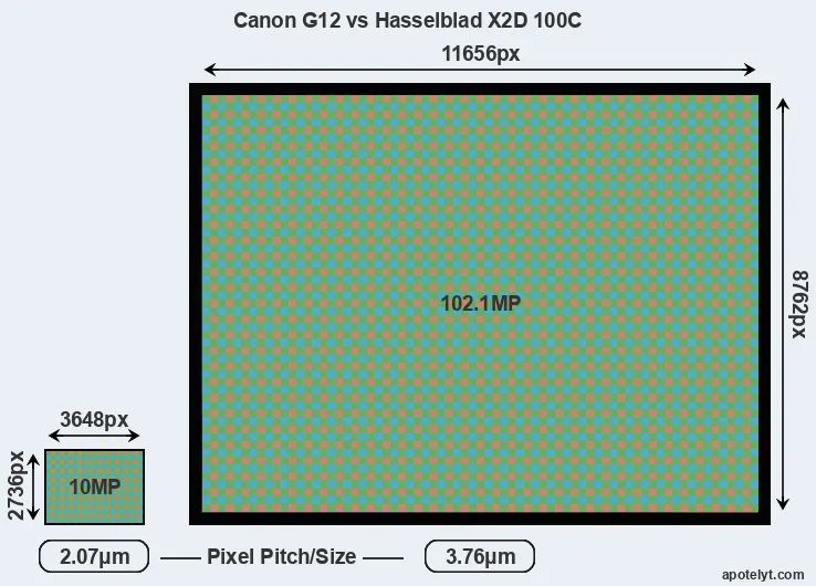 | Sensor Specs | Canon G12 | Hasselblad X2D 100C |