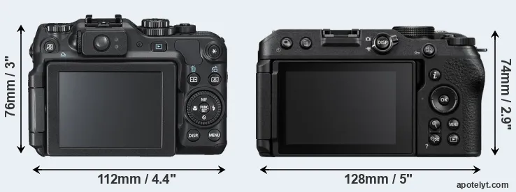 If the front view area (width x height) of the cameras is taken as an aggregate measure of their size, the Nikon Z30 is notably larger (11 percent) than the Canon G12. It is noteworthy in this context that the Z30 is splash and dust-proof, while the G12 does not feature any corresponding weather-sealing.