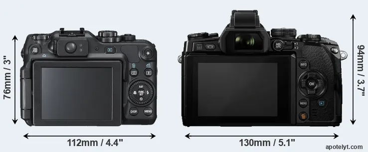 | Body Specs | Canon G12 | Olympus E-M1 |