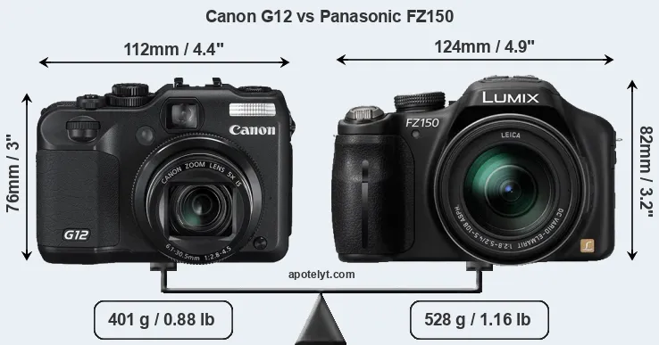 | Body Specs | Canon G12 | Panasonic FZ150 |