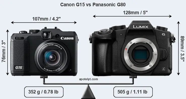 | Body Specs | Canon G15 | Panasonic G80 |