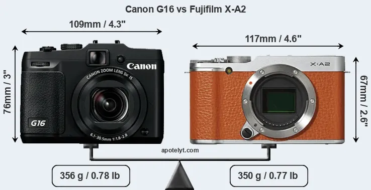 | Body Specs | Canon G16 | Fujifilm X-A2 |