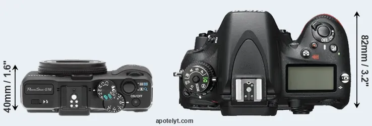 | Body Specs | Canon G16 | Nikon D600 |