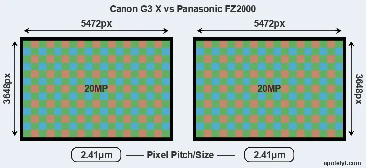 | Sensor Specs | Canon G3 X | Panasonic FZ2000 |