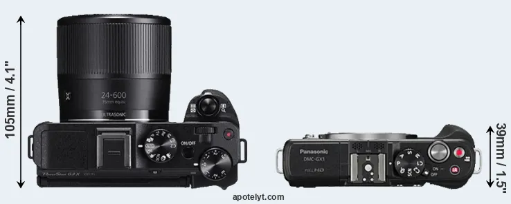 The above size and weight comparisons are to some extent incomplete and possibly misleading, as the G3X has a lens built in, whereas the GX1 is an interchangeable lens camera that requires a separate lens. Attaching the latter will add extra weight and bulk to the setup. You can compare the optics available for the GX1 and their specifications in the Micro Four Thirds Lens Catalog.
