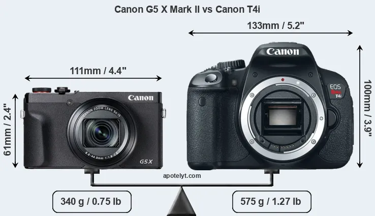 | Body Specs | Canon G5 X Mark II | Canon T4i |