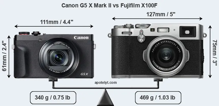Specifications: Canon G5 X Mark II vs Fujifilm X100F