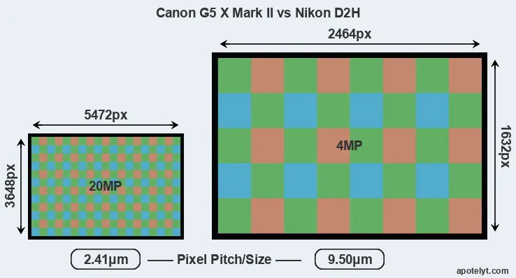 | Sensor Specs | Canon G5 X Mark II | Nikon D2H |