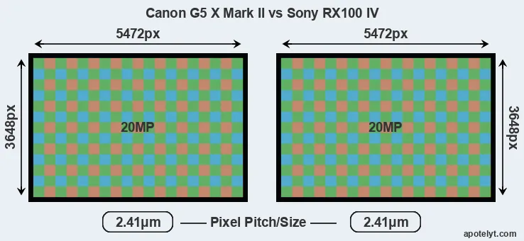 | Sensor Specs | Canon G5 X Mark II | Sony RX100 IV |