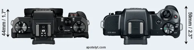 If the front view area (width x height) of the cameras is taken as an aggregate measure of their size, the Canon M50 is notably larger (20 percent) than the Canon G5 X. In this context, it is worth noting that neither the G5X nor the M50 are weather-sealed.