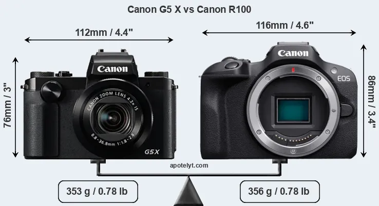 Size Canon G5 X vs Canon R100